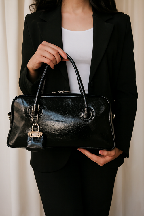 کیف زنانه مارلیس مشکی طرح چرم با بند بلند خاص و متفاوت