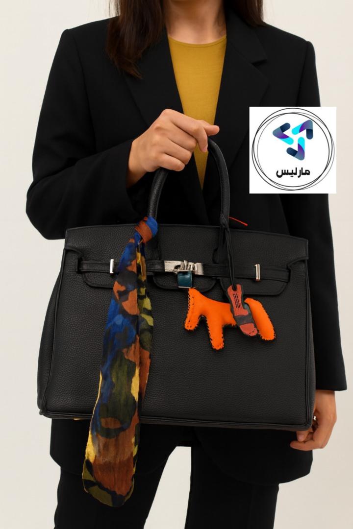 ماهیت محصول : کیف زنانه مشکی هرمس با اسکارف و اکسسوری خاص این برند