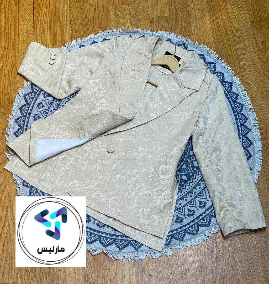 کت زنانه مارلیس یقه انگلیسی جلو کار لایی کار شده بغل چاک جلو باز در سایزهای 1 و 2 مناسب 38 الی 44