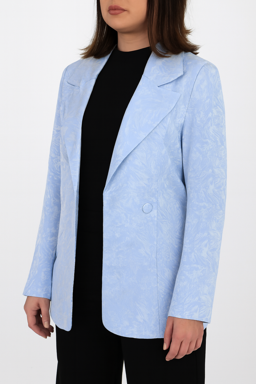 کت زنانه مارلیس یقه انگلیسی بغل چاکدار جلو باز کتان طرح دار با قد 70 سانتی متر
