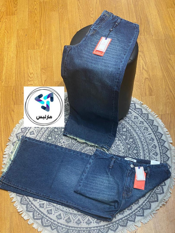 شلوار جین زنانه مارلیس برند رویال جین طرح واید لگ کمر ساده قد 90سانتی متر