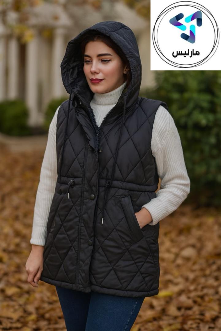 ماهیت : پافر زنانه مارلیس کمر گتر کلاه دار طرح رویه دوخت