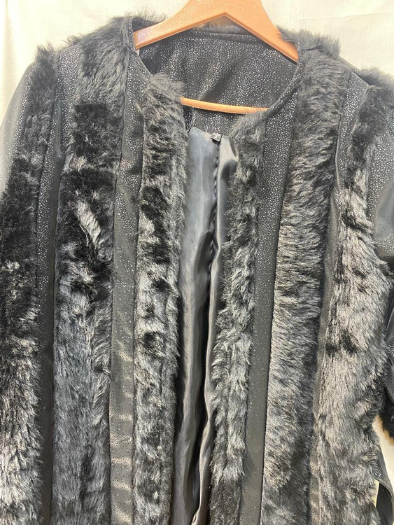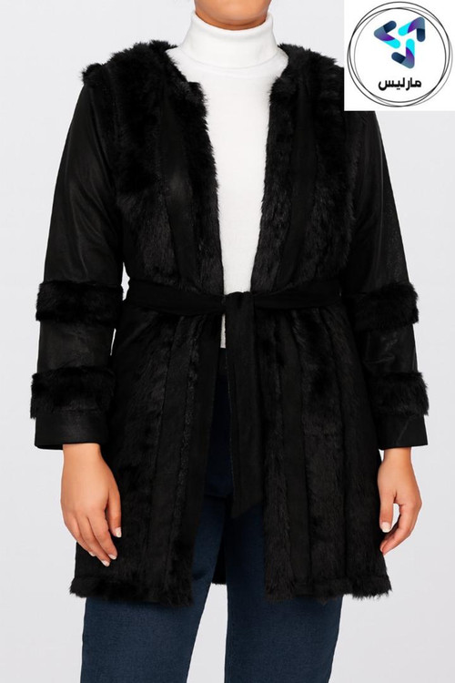پالتو زنانه مارلیس تمام آستردار طرح پوست و پارچه با بند بلند کمری