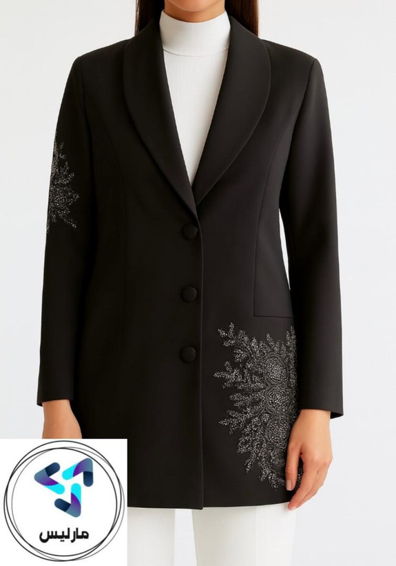 ماهیت محصول : مانتو زنانه مازراتی سه دکمه طرح دار نگینی جنس مازراتی